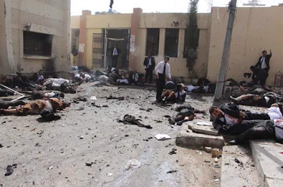 Graphic video footage from the scene showed bodies strewn on the ground, some still smoking, among pools of blood and shattered glass as shocked survivors cried and comforted one another.