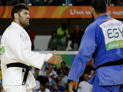 In the most recent incident, earlier this morning, Islam el-Shehaby of Egypt lost a first-round Olympic Judo match against Or Sasson of Israel. The Egyptian failed to bow or shake hands - which is not only bad form but a violation of the rules. Perhaps to avoid a suspension, he came back and gave a perfunctory 1 inch head nod.