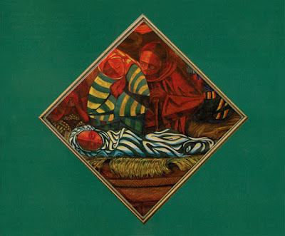 The 2015 Archdiocese of Chicago Christmas card is from a mural at the Holy Angels Church on the South Side of Chicago. Holy Angels has long been a center of black political activism, perhaps becoming most prominent under the leadership of Rev. George Clements. In the early 1990's Clements commissioned Fr. Englebert Mveng, a well-known Jesuit priest from Cameroon, to paint the mural, which contains various scenes from the Old and New Testaments featuring African-looking characters.